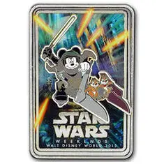 Logo Pin - Mickey, Chip & Dale Riding a Speederbike is a Limited Release pin from the Star Wars Weekends 2013 pin series. It was originally released on , 2013 and was available from Walt Disney World .