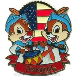 Chip dale is a Limited Edition (LE) 500 pin in the Independence Day Mini Pin Boxed Set 3-pin set from the 4th of July/Independence Day pin series. It was originally released in June, 2008 and was available from Disneyland Resort .