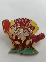 Happy New Year - Chip & Dale is a Limited Edition (LE) 300 pin from the New Year's Eve/Day pin series. It was originally released on , 2009 and was available from Disney Studio Store Hollywood / Soda Fountain .
