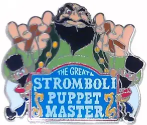Stromboli as The Great Stromboli Puppet Master is a Limited Release pin from the Mickey's Circus 2012 Pin Celebration: Sinister Sideshows Mystery Collection pin series. It was originally released on , 2012 and was available from Walt Disney World .