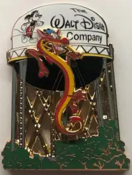 Mushu is a Limited Edition (LE) 250 pin from the The Walt Disney Company 95th Anniversary Water Tower Collection pin series. It was originally released on , 2019 and was available from Disney Employee Center .