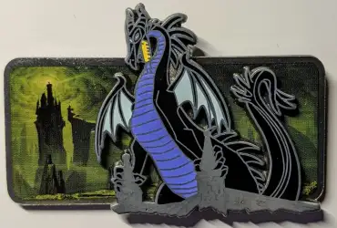 Maleficent Dragon on Drawbridge is an Open Edition pin from the Maleficent pin series. It was originally released on , 2008 and was available from Disney Store US .