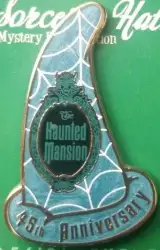 Haunted Mansion 45th Anniversary is a Limited Edition (LE) 250 pin from the Sorcerer Hats Mystery Pin Collection - Special Events pin series. It was originally released on , 2014 and was available from Walt Disney Imagineering .