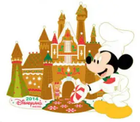 Disneyland Mickey is a Limited Edition (LE) 1200 pin from the Gingerbread House Collection 2014 pin series. It was originally released on , 2014 and was available from Disneyland Resort .