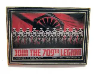 Stormtroopers - Join the 709th Legion is an Open Edition pin in the First Order Propaganda Poster Mystery Pin Collection - Enlist Join the 709 8-pin set from the Star Wars Galaxy's Edge pin series. It was originally released on , 2019 and was available from Multiple Sources (WDW, DLR, etc.).