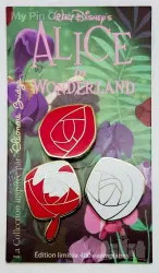 Roses is a Limited Edition (LE) 400 pin from the Eleonore Bridge Alice in Wonderland Collection pin series. It was originally released on , 2017 and was available from Disneyland Resort Paris .