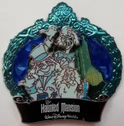 Hitchhiking Ghosts is a Limited Edition (LE) 2000 pin from the Happy Haunts Teal Frame Portrait Series pin series. It was originally released on , 2009 and was available from Walt Disney World .