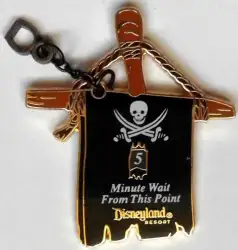 Pirates of the Caribbean - Wait Time is a Limited Edition (LE) 500 pin from the Signs at Disneyland Resort pin series. It was originally released on , 2008 and was available from Disneyland Resort .
