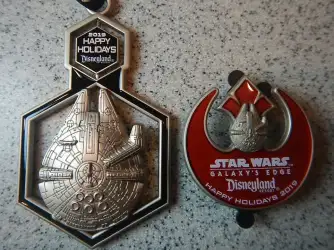 Millennium Falcon Ornament and Pin is a Limited Edition (LE) pin from the Happy Holidays Pin and Ornament Set pin series. It was originally released in January, 2020 and was available from Multiple Sources (WDW, DLR, etc.).