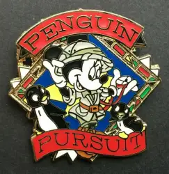 Penguin Pursuit with Minnie Mouse is a Limited Release pin from the Adventures by Disney - Safari In South Africa pin series. It was originally released in January, 2009 and was available from Adventures by Disney .