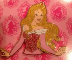 Aurora ONLY is an Open Edition pin in the Princess Rhinestone Set (Aurora, Cinderella, Rapunzel, Belle) 4-pin set from the Princess Rhinestone Sets pin series. It was originally released in May, 2003 and was available from Hong Kong Disneyland .