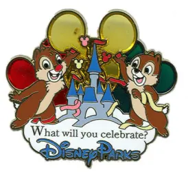 Chip and Dale with Balloons - What will you celebrate? is an Open Edition pin from the Disney Visa Card Rewards pin series. It was originally released on , 2010 and was available from Multiple Sources (WDW, DLR, etc.).