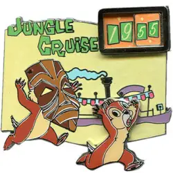 Jungle Cruise- Chip & Dale is a Limited Edition (LE) 755 pin from the Dateline: Disneyland 1955 - 55 Years Series pin series. It was originally released on , 2010 and was available from Disneyland Resort .