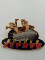 Chip and Dale on the Golden Zephyr is an Open Edition pin from the California History Series pin series. It was originally released on , 2003 and was available from Disneyland Resort .