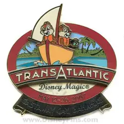 Chip and Dale is a Limited Edition (LE) 1500 pin from the Disney Cruise Line Destinations: Transatlantic Cruise 2007 pin series. It was originally released on , 2007 and was available from Disney Cruise Line .
