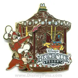 Chip and Dale Carousel is a Limited Edition (LE) 750 pin from the Gingerbread House Collection 2007 pin series. It was originally released on , 2007 and was available from Walt Disney World .