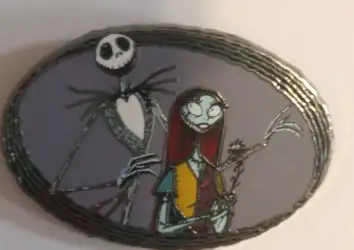 Pin features Jack Skellington and Sally from The Nightmare Before Christmas