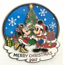 Merry Christmas Mickey and Minnie is a Limited Edition (LE) 4000 pin from the Christmas 2017 pin series. It was originally released on , 2017 and was available from Disneyland Resort .