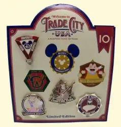 Mini Trading Bag Pin Set — Full Set is a Limited Edition (LE) 300 4-pin set from the Trade City, USA pin series. It was originally released on , 2010 and was available from Walt Disney World .