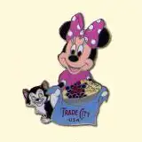 Minnie with Figaro Only is a Limited Edition (LE) 300 pin in the Minnie's Bed & Breakfast Recipe Box Set 3-pin set from the Trade City, USA pin series. It was originally released on , 2010 and was available from Walt Disney World .