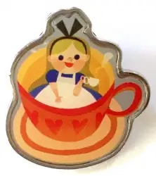 Alice Teacup is an Open Edition pin in the Wish Pin Set 3-pin set from the Tokyo Disney Celebration Hotel Mural Collection pin series. It was originally released in May, 2017 and was available from Tokyo Disneyland Resort .