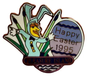 1995 - Happy Easter is a Limited Edition (LE) 700 pin from the Pleasure Island Cast Member Gifts pin series. It was originally released on , 1995 and was available from Walt Disney World .