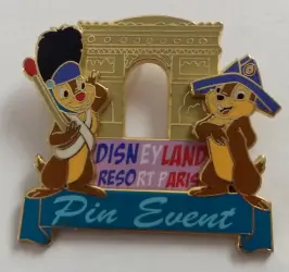 Chip and Dale at the Arc de Triomphe is a Limited Edition (LE) 600 pin from the Bonjour Paris Pin Event pin series. It was originally released on , 2006 and was available from Disneyland Resort Paris .