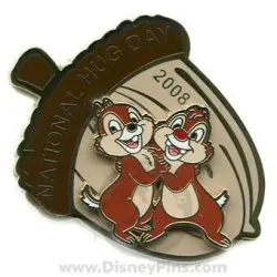 National Hug Day - Chip & Dale is a Limited Edition (LE) 200 pin from the National Hug Day pin series. It was originally released on , 2008 and was available from Multiple Sources (WDW, DLR, etc.).