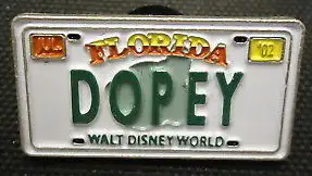 DOPEY is an Open Edition pin from the Cast Lanyard Collection I - Florida License Plates pin series. It was originally released in April, 2002 and was available from Walt Disney World .
