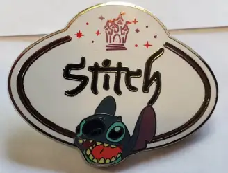 Stitch is an Open Edition pin from the Name Tag Mystery Collection pin series. It was originally released in January, 2010 and was available from Hong Kong Disneyland .