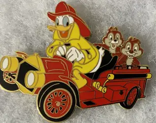 Firefighter Donald with Chip and Dale in Car is a Limited Edition (LE) 500 pin from the Disney Auctions pin series. It was originally released on , 2004 and was available from Disney Auctions .
