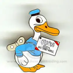 Donald Duck is a Limited Edition (LE) 2000 pin from the Happy Holidays 2004 Pin Pursuit pin series. It was originally released on , 2004 and was available from Walt Disney World .