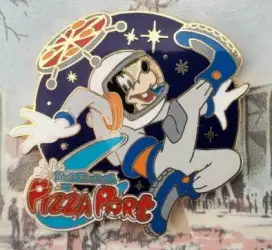 Redd Rocket's Pizza Port is a Limited Edition (LE) 10000 pin from the Annual Passholder - Five Decades of Disney Dining Series pin series. It was originally released on , 2006 and was available from Disneyland Resort .