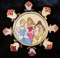 Belle, Aurora, and Cinderella Flower Circle is a Limited Edition (LE) 1000 pin. It was originally released on , 2004 and was available from Disney Auctions .
