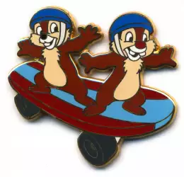 Chip & Dale Riding a Skateboard is a Limited Edition (LE) 900 pin from the Expedition: PINS - Mystery Pin Collection pin series. It was originally released on , 2008 and was available from Walt Disney World .