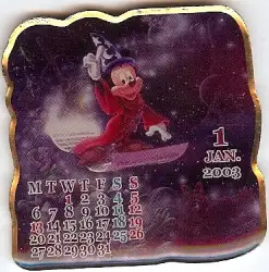 Sorcerer Mickey - January is a Limited Edition (LE) 2000 pin from the Mickey & Pals - Disney Characters Calendar 2003 pin series. It was originally released on , 2002 and was available from Disney Store Japan .