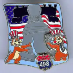 Chip 'n' Dale Celebrate America is a Limited Edition (LE) 750 pin from the Pin Route 498 Pin Celebration 2005 pin series. It was originally released on , 2005 and was available from Walt Disney World .
