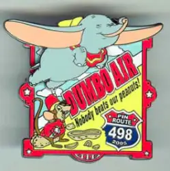 Dumbo Air is a Limited Edition (LE) 500 pin from the Pin Route 498 Pin Celebration 2005 pin series. It was originally released on , 2005 and was available from Walt Disney World .
