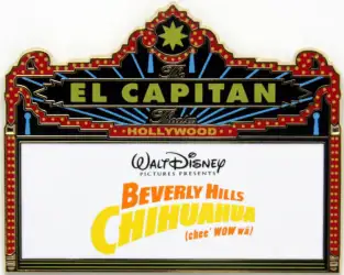Beverly Hills Chihuahua is a Limited Edition (LE) 150 pin from the El Capitan Marquee Series pin series. It was originally released on , 2008 and was available from Disney Studio Store Hollywood / Soda Fountain .