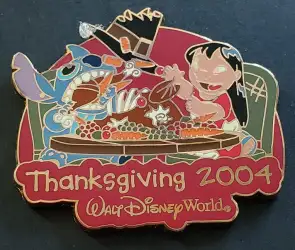 Lilo and Stitch is a Limited Edition (LE) 2000 pin from the Thanksgiving pin series. It was originally released in November, 2004 and was available from Walt Disney World .