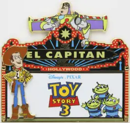 Toy Story 3 is a Limited Edition (LE) 500 pin from the El Capitan Marquee Series pin series. It was originally released on , 2010 and was available from Disney Studio Store Hollywood / Soda Fountain .