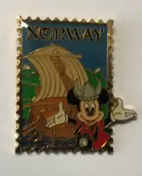 Norway is a Limited Edition (LE) 1000 pin in the Epcot 15th Anniversary Framed Set Mickey Country Stamps 12-pin set from the Epcot 15th Anniversary pin series. It was originally released on , 1997 and was available from Multiple Sources (WDW, DLR, etc.).