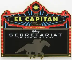 Secretariat is a Limited Edition (LE) 300 pin from the El Capitan Marquee Series pin series. It was originally released on , 2010 and was available from Disney Studio Store Hollywood / Soda Fountain .