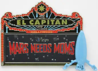 Mars Needs Moms is a Limited Edition (LE) 300 pin from the El Capitan Marquee Series pin series. It was originally released on , 2011 and was available from Disney Studio Store Hollywood / Soda Fountain .
