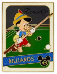 All Stars billiards Pinocchio is a Limited Edition (LE) 4000 pin from the All Stars Trading Card Series pin series. It was originally released on , 2020 and was available from Multiple Sources (WDW, DLR, etc.).