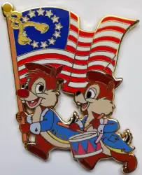 Chip and Dale Drumming is a Limited Edition (LE) 250 pin from the 4th of July/Independence Day pin series. It was originally released on , 2008 and was available from Disney Store US .