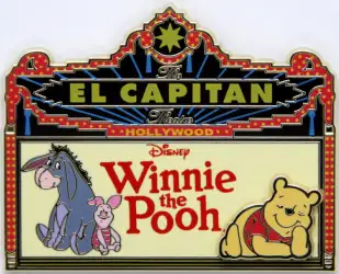 Winnie the Pooh is a Limited Edition (LE) 300 pin from the El Capitan Marquee Series pin series. It was originally released on , 2011 and was available from Disney Studio Store Hollywood / Soda Fountain .