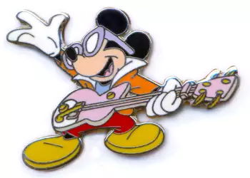 Rock & Roll Star Mickey Playing a Guitar is an Open Edition pin. It was originally released on , 2002 and was available from Disney Store Japan .