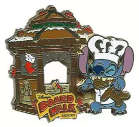 Disney's Boardwalk Resort - Stitch is a Limited Edition (LE) 750 pin from the Gingerbread House Collection 2010 pin series. It was originally released on , 2010 and was available from Walt Disney World .