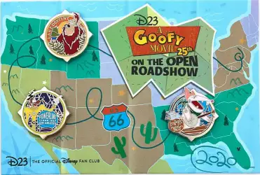 A Goofy Movie 25th Anniversary Set is a Limited Edition (LE) 1750 pin from the A Goofy Movie 25th Anniversary Set pin series. It was originally released on , 2020 and was available from Multiple Sources (WDW, DLR, etc.).
